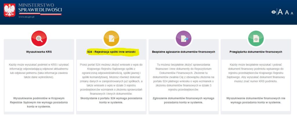 - złożenie dokumentów do KRS przez S24 lub RDF.